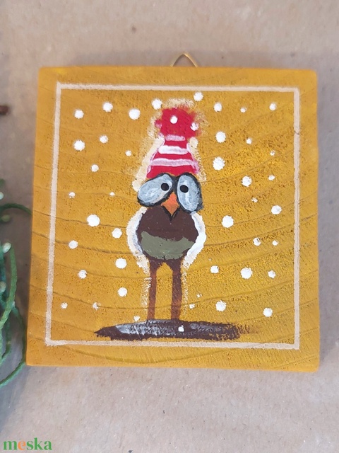 - Anyaga: fa, akrilfesték, lakk, fém akasztó
