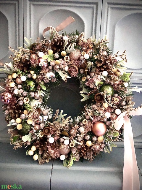 Karácsonyi ajtódísz rózsaszínre hangolva