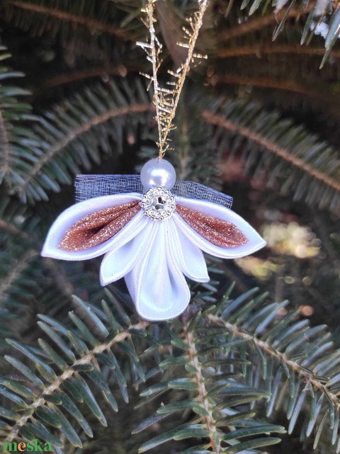 - Anyaga: szaténszalag, gyöngy, tüll, strassz