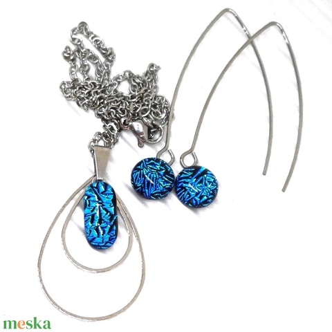 Harmatcsepp türkizkékben NEMESACÉL/DICHROIC ÜVEG nyaklánc és fülbevaló, ékszerszett nőknek