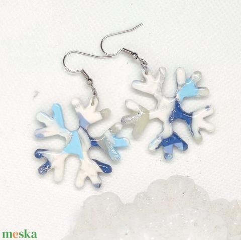 Hópehely alakú, kék árnyalatú és ezüst színű fülbevaló