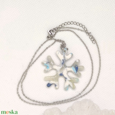 Hópehely alakú, kék árnyalatú és ezüst színű medál