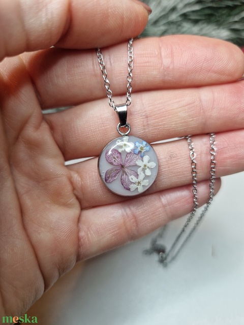 Nemesacél nyaklánc hortenzia és nefelejcs virággal