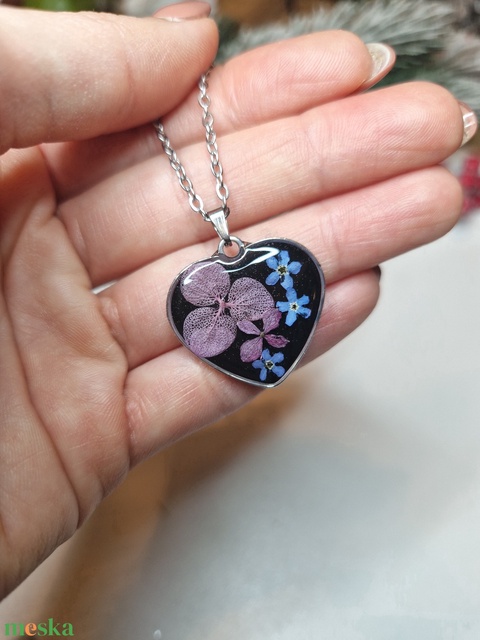 Nemesacél nyaklánc virágokkal +ajándék jesmonite szív tál