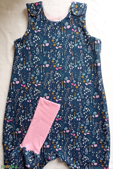 104-110-116-os átmeneti tipegő hálózsák pamut melegebb szobába 23-25 fokba sötétkék virágos