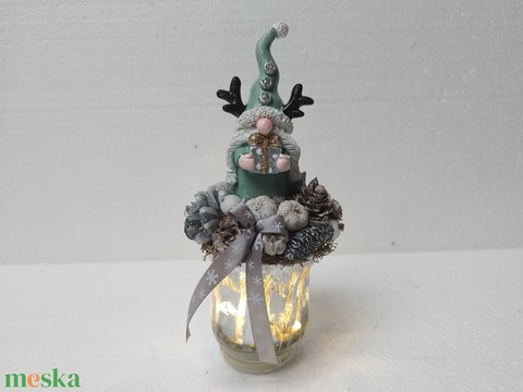 - Anyaga: üveg kaspó, kerámia manó, száraz termés, selyem szalag