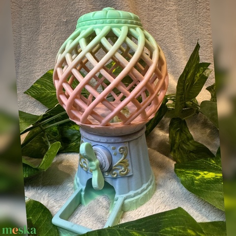 Működő Dobókocka tartó és dobó torony, amely egy cukorka gépet formáz meg. A kar eltekerésével adagolja ki egyesével a gép a dobókockát. Standard, maximum 20mm átmérőjű kockákhoz készült, azonban tárolóként az ennél nagyobb kockákhoz is tökéletes, mivel a tetején lévő kupak lecsavarható.