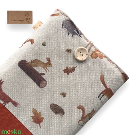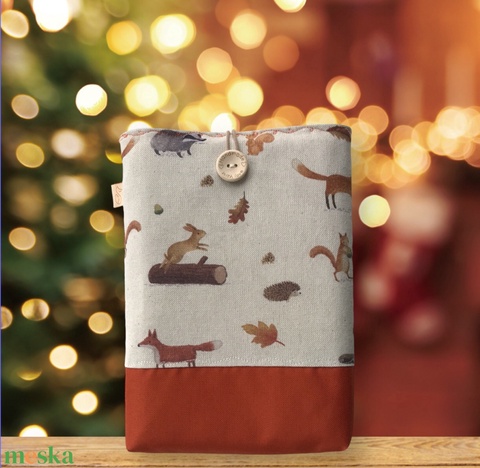 Bélelt könyvtok, erdő állatai mintával - nyuszi, mókus, róka és süni - Artiroka design