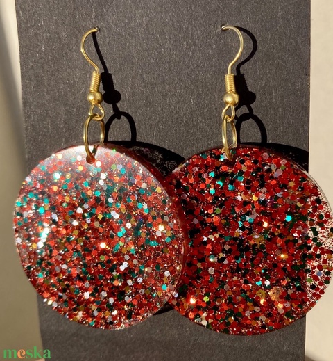 Kerek csillámos műgyanta fülbevaló - 4 méretben!