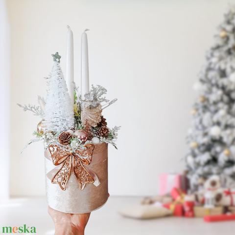 - Anyaga: bársonybox, viaszgyertya, termések, karácsonyfadísz