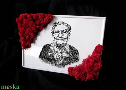 Családi fotó rajz festés képkeretben zuzmó moha díszítéssel