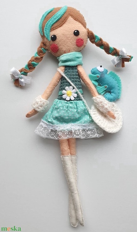Milla- öltöztethető textilbaba kis kaméleonnal és kiegészítőkkel - Azonnal vihető!