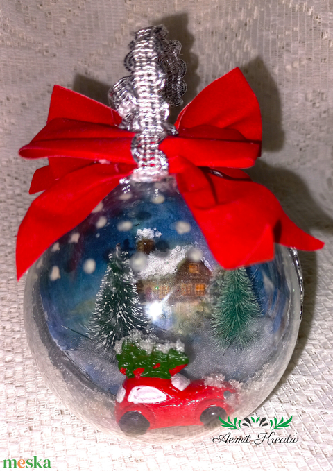 Karácsonyfa dísz átlátszó piros kisautóval