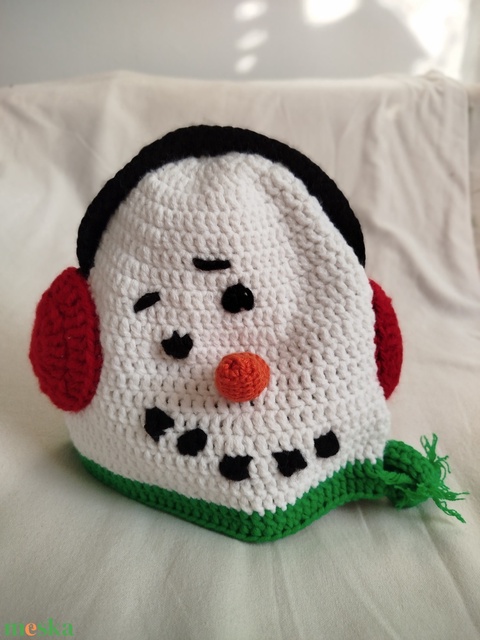Horgolt gyereksapka - Hóember figurás