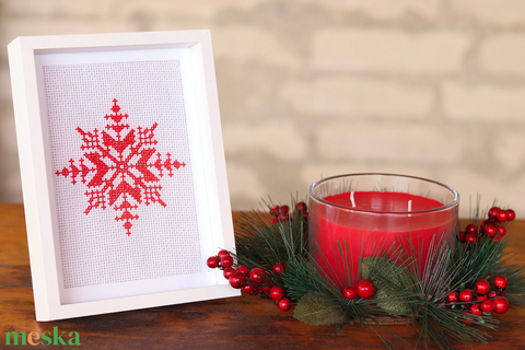Ez a keresztszemes hópehely nemcsak dekoráció, hanem időtálló ajándék, mely túlmutat a hagyományos üdvözlőlapokon.