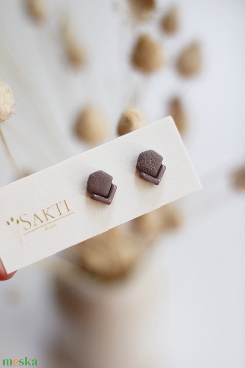 Barna elegáns gomb fülbevaló, gomb fülbevaló