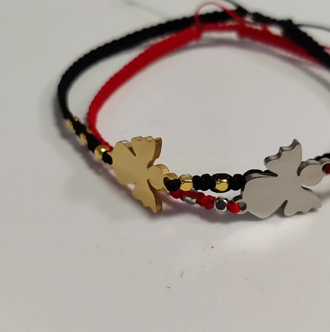 Ékszerek-karkötők: Makramé karkötő SK-M 13-4 nemes acél angyalkával több szinben és méretben 2db/csomag