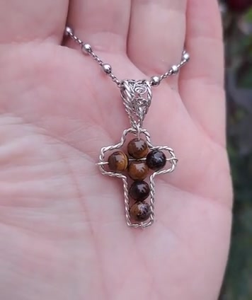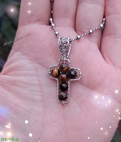 Kereszt medál tigrisszem gyöngyökkel