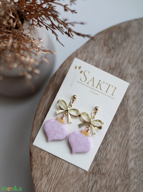 Rózsaszín mintás karácsonyfadísz függő fülbevaló, függő fülbevaló, karácsonyi fülbevaló