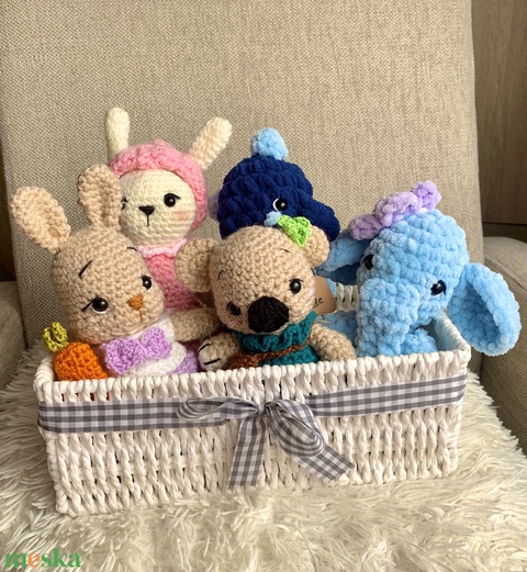 KIÁRUSÍTÁS!! Horgolt plüss állatok elefánt, koala, nyuszi, dínó
