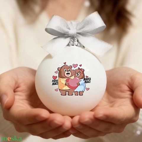Papa maci, Mama maci karácsonyi gömb - üveg karácsonyfa dísz - 100028