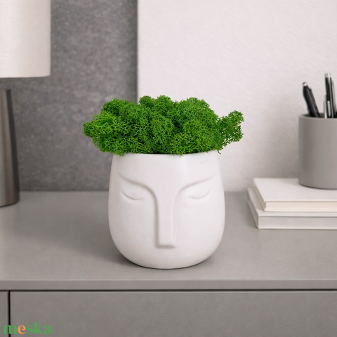 Modern fej formájú kaspódísz izlandi zuzmóval
