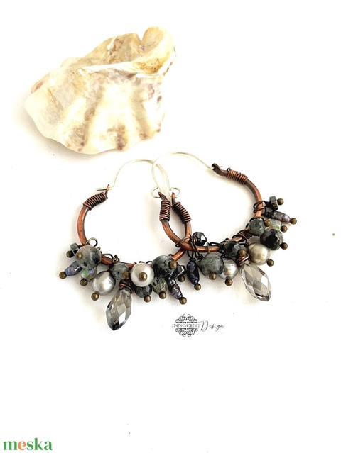 vörösréz, jáde, tenyésztett gyöngy, ezüst, üveggyöngy, hematit, labradorit