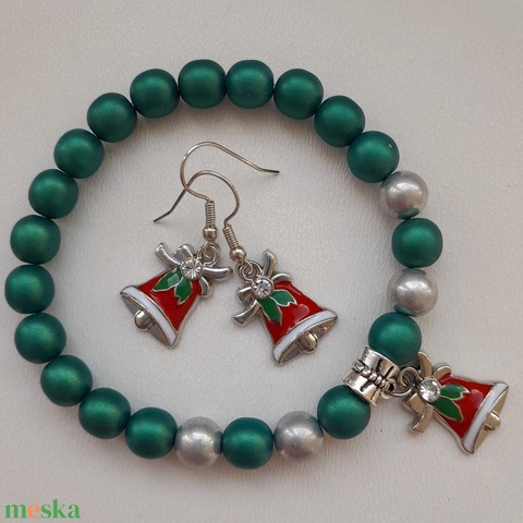Karácsonyi harang ékszerszett - karkötő, fülbevaló
