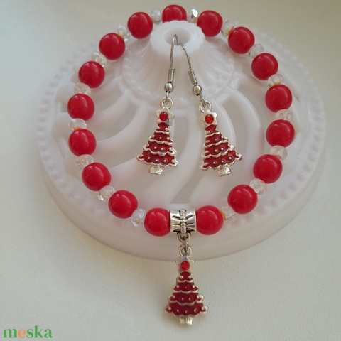 Karácsonyi fenyőfás ékszerszett - karkötő, fülbevaló