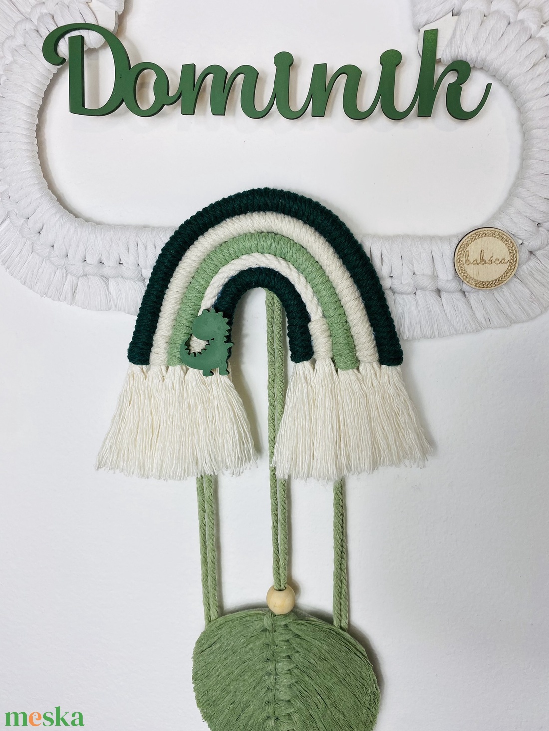 - Anyaga: fa, pamut makramé fonal