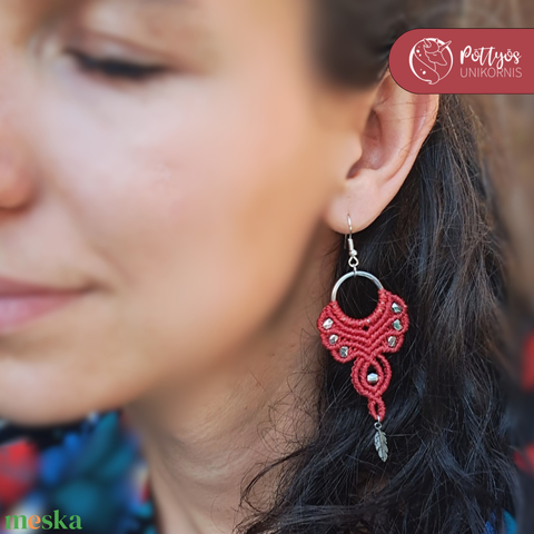 Mikromakramé fülbevaló pár - Piros/Kék/Rózsaszín
