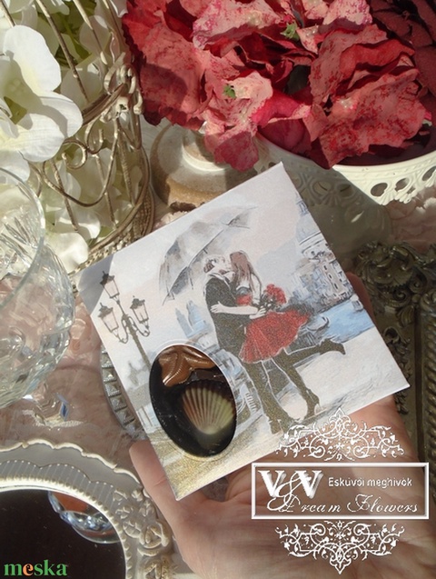 Esküvői meghívó belga bonbonnal díszdobozban