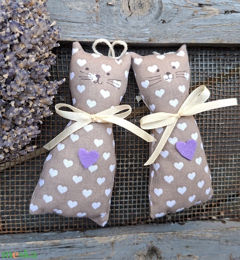 Levendula -kávé -cicák párban, illatzsákok, illatpárnák- 2db, levendulavirággal töltve