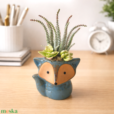 Pozsgás dekoráció rókás kaspóban IV.