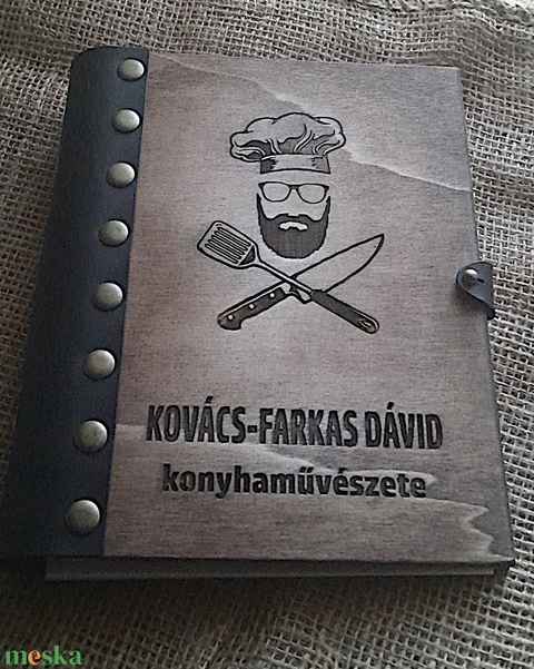 Egyedi Gravírozott Fa Borítós Üres Receptkönyv - Bőrkötéses Kivitelben