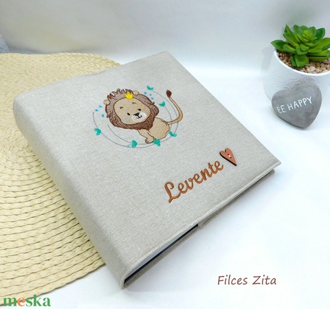 Oroszlános baba fotóalbum hímzett névvel - textil fényképalbum babáknak