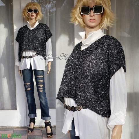 CECILY - exkluzív kézzel kötött selyem-mohair flowing poncsó pulóver