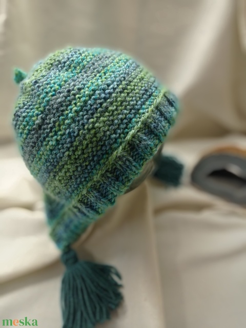 Kötött, szín-átmenetes női sapka, gyapjú tartalmú fonalból