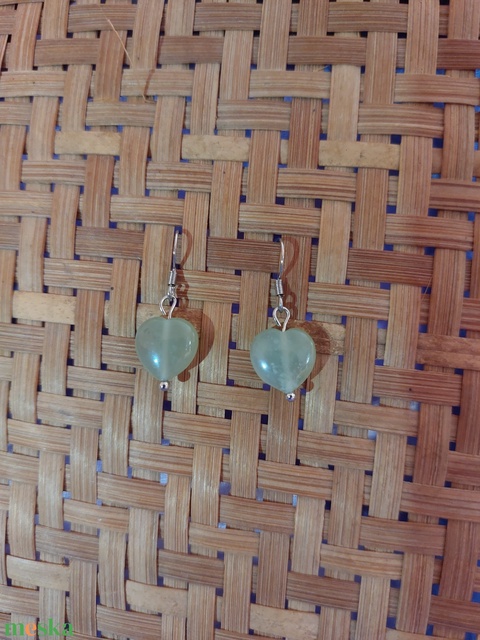 Jade-szív ásványfülbevaló - orvosi fém akasztóval