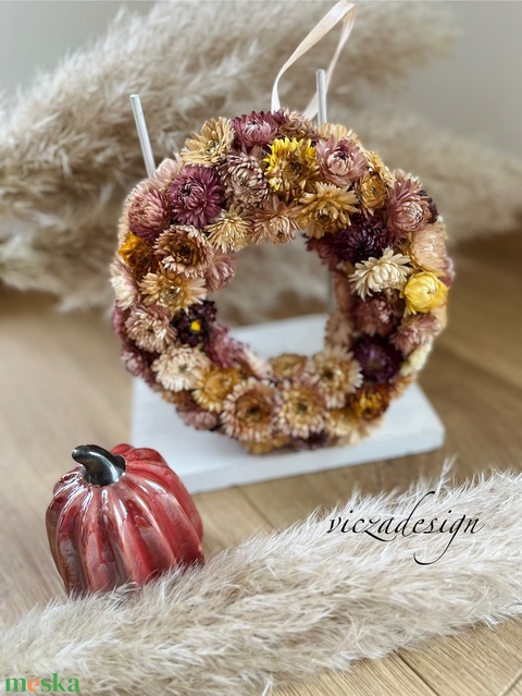 Szárazvirág koszorú, ajtódísz, kopogtató 20 cm - szalmakoszorú tavasz-nyár-ősz