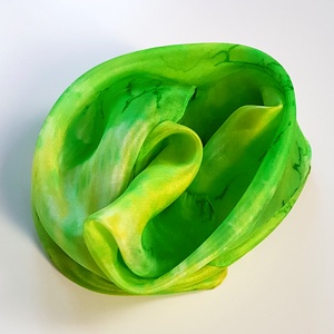 Kézzel festett színes SELYEMKENDŐ, a zöld, citrom és világos zöld árnyalatai