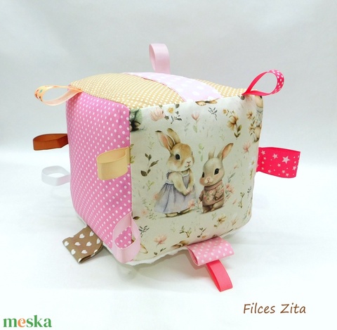 Nyuszis névre szóló babakocka- mókakocka csörgővel