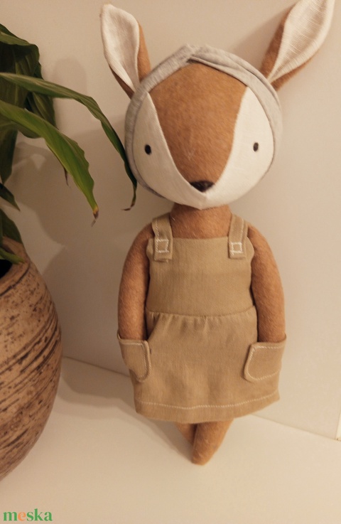 Őzike - kantáros ruhában - kézműves, öltöztethető gyerekjáték