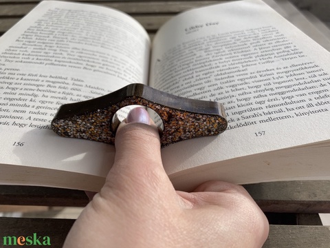 Könyvgyűrű / ujjtámasz olvasáshoz kávé színű epoxi műgyantából