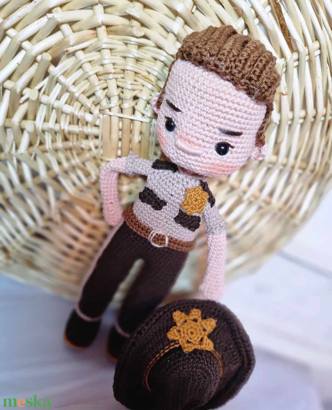 Horgolt baba, horgolás, amigurumi, fiú baba, seriff baba