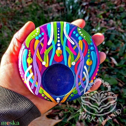 Kézzel festett, fából készült mandalás mécsestartó – egyedi fényforrás otthonodba