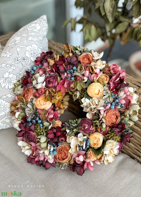 Vintage pasztell luxus selyemvirág kopogtató teli fazon- virágkoszorú - őszi selyemvirágos ajtódísz