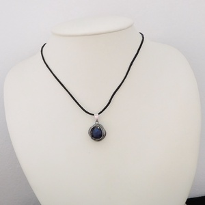 A medál Tiffany technikával készült szodalit, réz és ólommentes, ezüsttartalmú ón felhasználásával. A díszítés szintén saját készítésű, nem tartalmaz gyári elemeket. A fémrészt óezüstre patináztam és lelakkoztam, hogy sokáig szép maradjon.