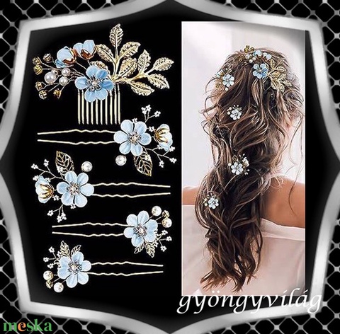 Ékszerek-hajdíszek, hajcsatok: Esküvői, menyasszonyi, alkalmi hajdísz, ES-H-SZ22a 5db-os szett