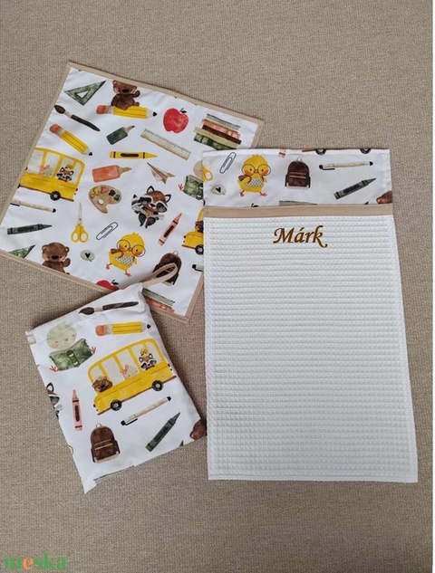 - 1 db szalvéta / kisterítő: Kétrétegű kialakítású, egyik oldala pamutvászon a kellemes tapintásért, míg a másik oldala vízhatlan PUL anyag, amely könnyen letörölhető és fertőtleníthető. Ez a szalvéta tökéletes társ az uzsonnák mellé.
